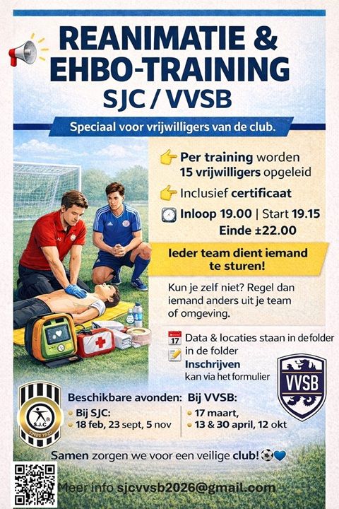🚨 Inschrijving reanimatie & EHBO-training voor vrijwilligers SJC & VVSB gestart⚽