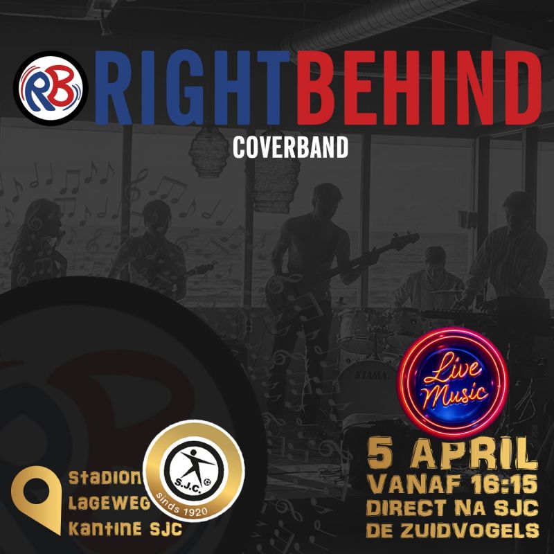 Na een succesvol optreden vorig jaar en vorige week op de Lenteavond treedt coverband RightBehind weer op bij S.J.C.