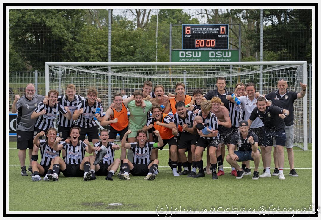 Zaterdag 14 juni om 11:00 uur ging de finale van start tussen S.J.C. 2 en Nieuwerkerk 2 op, neutraal terrein, bij DHC in Delft. Een wedstrijd in de Promotieseries, waar de beloning een promotie naar de Hoofdklasse zou betekenen. En wat denk je..??? HET IS GELUKT..!!!! Het werd een meer dan feestelijke middag, want S.J.C. 2 wist haar tegenstander met maar liefst 6-0 van zich af te houden.!!! En daarmee speelt S.J.C. 2 (zaterdag) in het seizoen 2025-2026 HOOFDKLASSE. Ererondje rond het veld, mensen op de schouders, alle elementen voor feestvreugde waren er in Delft voor de Zwart-Witten..!! Voor allen, die daar hun “steentje” aan hebben bijgedragen onze felicitaties met deze top prestatie!