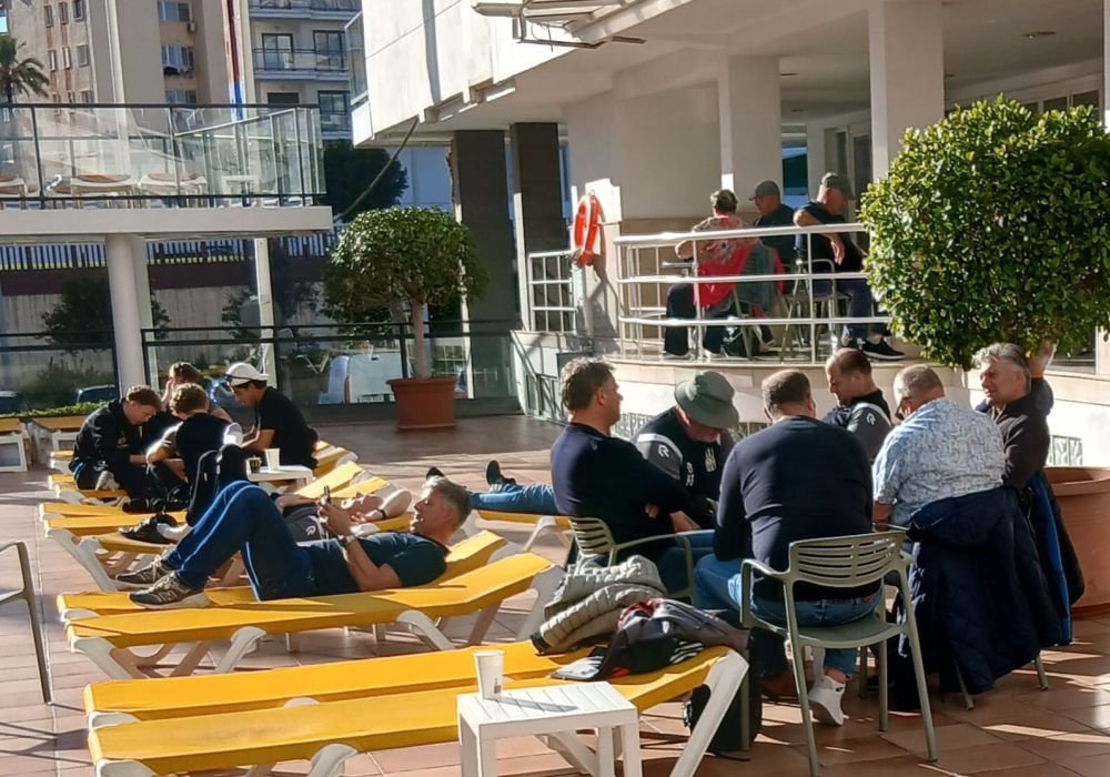 De dag van de thuisreis naar de barre omstandigheden in Nederland begon met een gezamenlijk ontbijt in de catacomben van Fiesta Park Hotel. Via de Tv kwamen eerder niet zulke plezierige beelden ons slaapkamertje binnen. Maar de wetenschap dat er nog een aantal uren Costa Blanca te vieren waren stemde iedereen weer vrolijk.