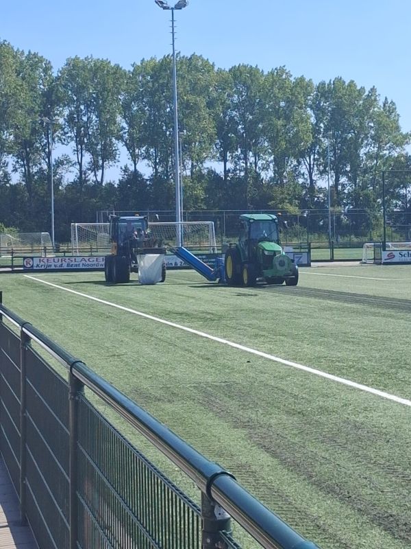 Als eerste worden de rubberkorrels uit de velden gehaald. Dat is inmiddels voor veld 4 gebeurd. Vervolgens wordt er zand op het veld aangebracht en daarna worden de kurk op het veld aangebracht. Op vrijdag 15 augustus wordt de kurk op veld 4 aangebracht. Dit veld is dan vanaf zaterdag 16 augustus weer bespeelbaar.