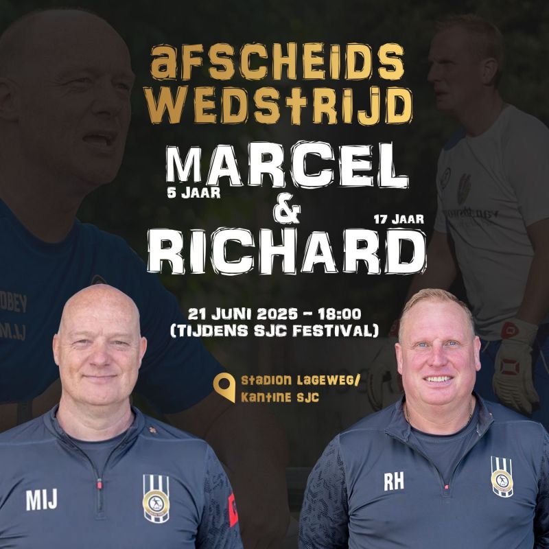 Op 21 juni om 18:00 tijdens het SJC Festival is het tijd om afscheid te nemen van onze geliefde hoofdtrainer en keeperstrainer.