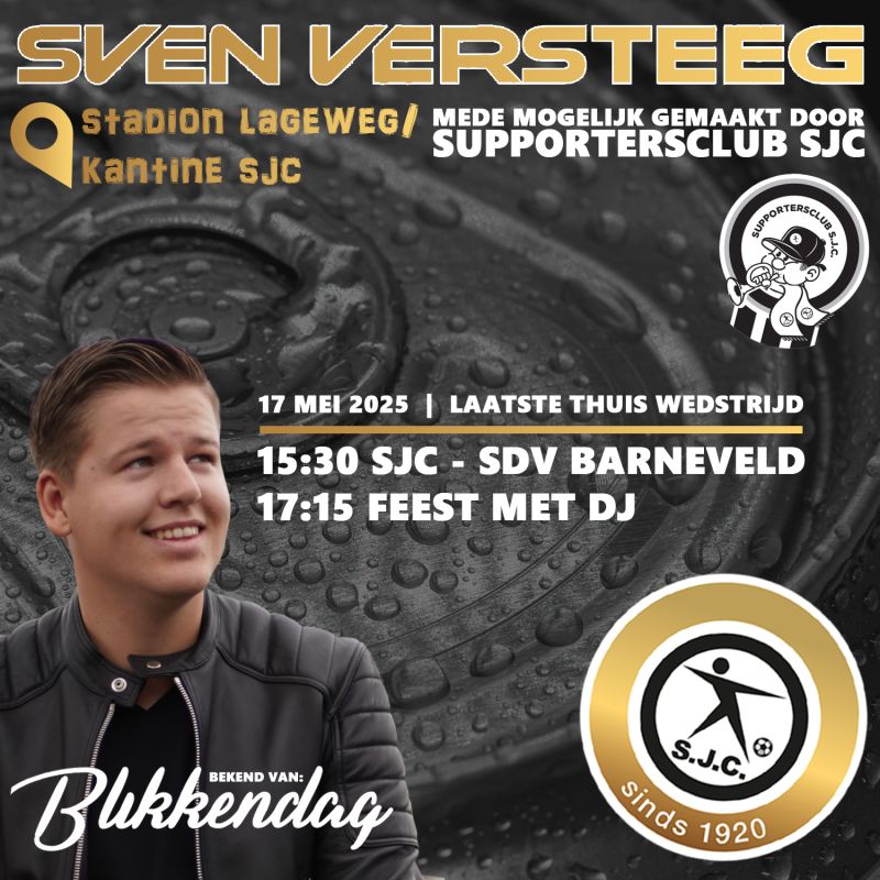 Aanstaande zaterdag 17 mei spelen de mannen van trainer IJzendoorn hun laatste thuiswedstrijd van het seizoen. Tegenstander is SDV Barneveld. De derde helft belooft een groot feest te worden! Sven Versteeg, bekend van de hit Blikkendag, treedt namelijk op aan de Lageweg. Hulde aan de Supportersclub, die dit spektakel mede mogelijk maakt!