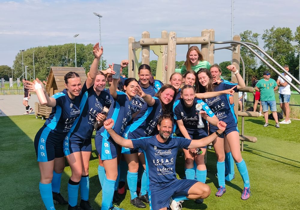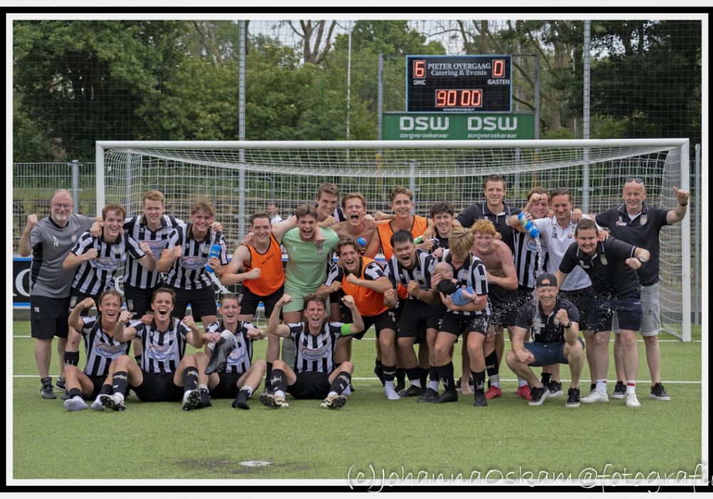 Zaterdag 14 juni om 11:00 uur ging de finale van start tussen S.J.C. 2 en Nieuwerkerk 2 op, neutraal terrein, bij DHC in Delft. Een wedstrijd in de Promotieseries, waar de beloning een promotie naar de Hoofdklasse zou betekenen. En wat denk je..??? HET IS GELUKT..!!!! Het werd een meer dan feestelijke middag, want S.J.C. 2 wist haar tegenstander met maar liefst 6-0 van zich af te houden.!!! En daarmee speelt S.J.C. 2 (zaterdag) in het seizoen 2025-2026 HOOFDKLASSE. Ererondje rond het veld, mensen op de schouders, alle elementen voor feestvreugde waren er in Delft voor de Zwart-Witten..!! Voor allen, die daar hun “steentje” aan hebben bijgedragen onze felicitaties met deze top prestatie!