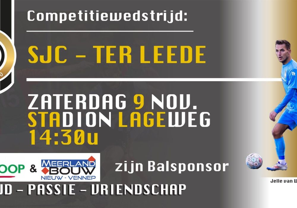 Voor de streekderby SJC – Ter Leede hebben we 2 balsponsors: Welkoop uit Rijnsburg en Meerland Bouw uit Nieuw Vennep.