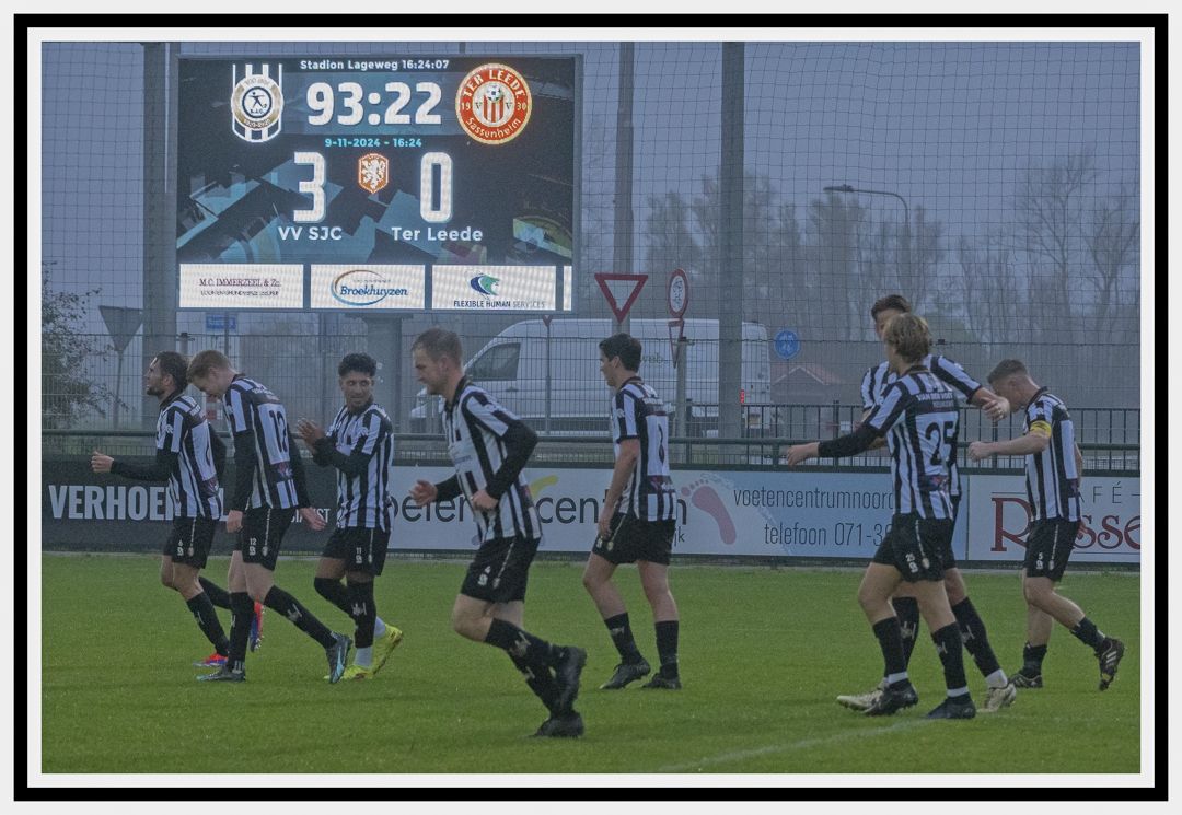 De algemene verwachting dat Ter Leede na de rust wel hoger druk zou gaan zetten bleek bepaald niet juist. S.J.C. was opnieuw vaster aan de bal en maakte het Ter Leede steeds knap lastig. Waarbij en Wesley Haasnoot zich in de 61e minuut opnieuw vrij speelde maar zijn schot helaas net langs de paal zag vliegen. En even later was het Gerson Pisas die zijn tegenstanders te snel af was maar vervolgens geen kans zag om keeper Kwant te passeren. De daaruit voort komende corner leverde opnieuw een bal op de paal op. Natuurlijk deed Ter Leede ook wat terug en zo kon bijvoorbeeld Marc de Kruijs, oog in oog met Lex Hoogervorst, de juiste richting niet vinden.