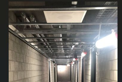 Maar ook op de begane grond moet de luchttoevoer naar de kleedkamers aangepast worden. Dat betekent dat de plafonds in de gangen opengemaakt gaan worden om bij de luchtkanalen en kleppen te kunnen komen.
